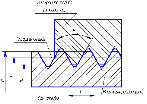 профили резьб общего назначения. Резьба метрическая (рис. 2 а), резьба трубная