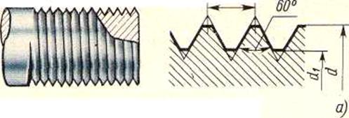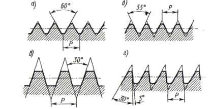 (рис. 2 б), резьба трапецеидальная (рис. 2 в), резьба упорная (рис. 2 г).