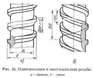 однозаходной резьбы ход равен шагу Ph = Р (рис. 3 а), у многозаходной ход равен шагу, умноженному на
