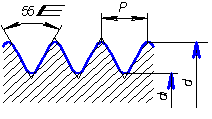 резьбы d - диаметр воображаемого цилиндра, описанного вокруг вершин