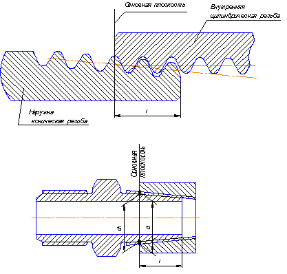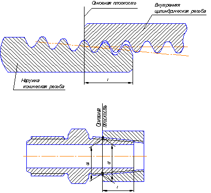 цилиндрической поверхности, называется цилиндрической резьбой, на конической