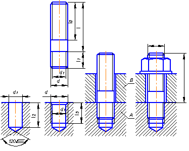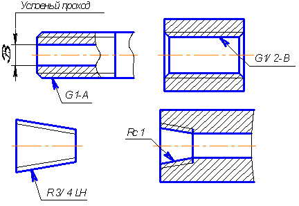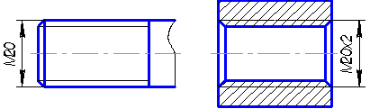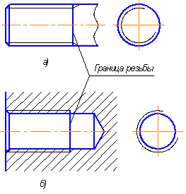 эскизом правило: «Резьба стержня закрывает резьбу отверстия».