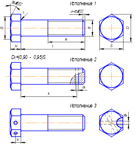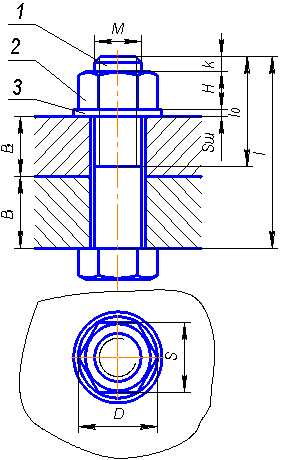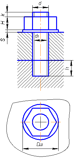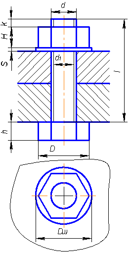 показывают зазор между болтом (шпилькой) и соединяемыми деталями. На виде