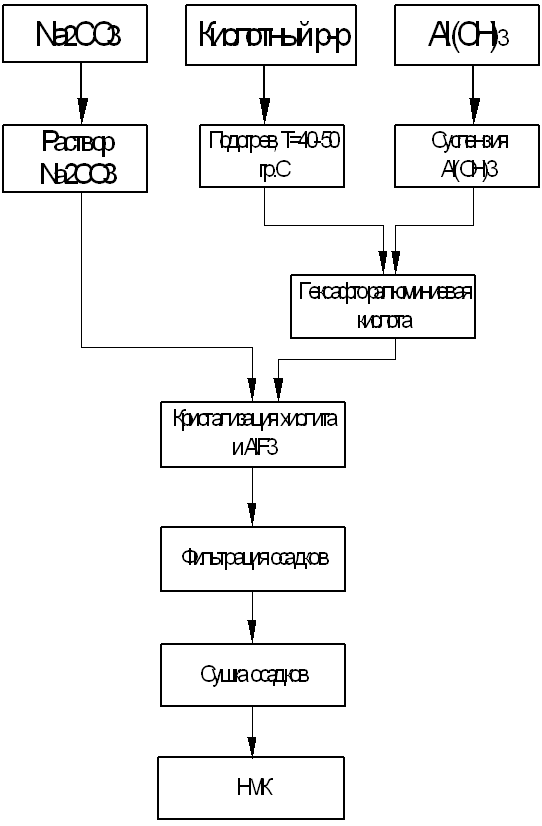 Технология получения, как фтористого алюминия (AlF3), так и НМК с КО до