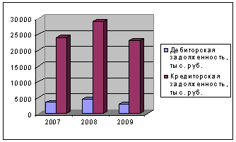 задолженность превысила дебиторскую в 2007 году на 1710 тыс. руб., в 2008 году