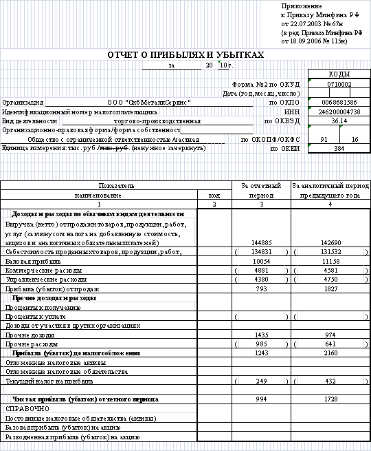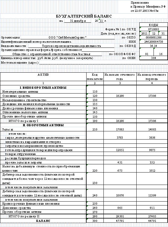 времени ООО «СибМеталлСервис» за 2010 - 2011 гг.