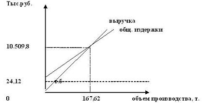 безубыточности остановится на 167,62 т., если цену на продукцию снизить на 1