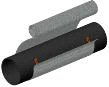 . Поместите материал на трубу, а затем оберните его вокруг трубы,