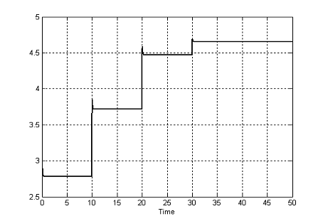 Двигатель разгоняется до скорости 10 рад/сек за четыре этапа,