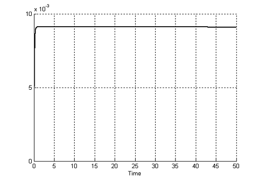 до скорости 10 рад/сек. Время регулирования t=0.5с.