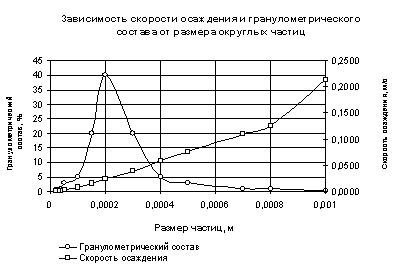 осаждения сырьевых компонентов в зависимости от гранулометрии при заданной