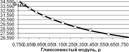 оптимальное значение глиноземистого модуля (p) для получения расплава в количестве 20-30% находится в