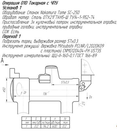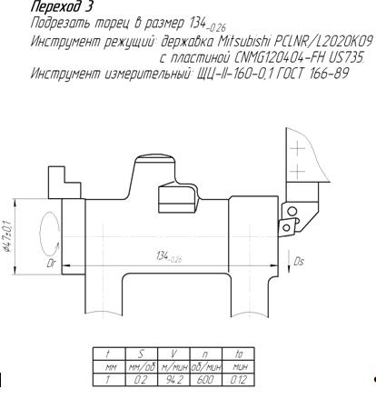 Подрезать торец в размер 136.5±0.3 по эскизу