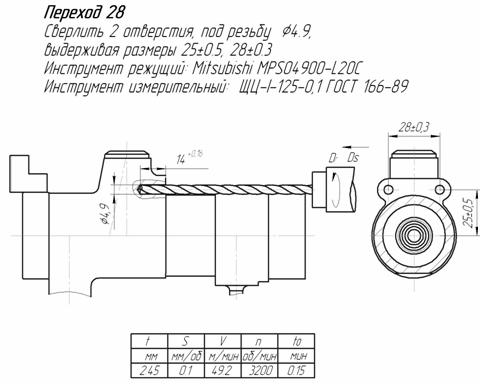технологическую резьбу М33х1.5-7Н) на глубину 45+0,5.