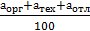 аорг=3,6%, атех=1,7%, аотл=2% -% от