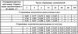 Таблица К.3 - Коэффициент использования вертикальных стержней