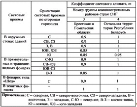 Таблица К.6 - Значения коэффициента светового климата