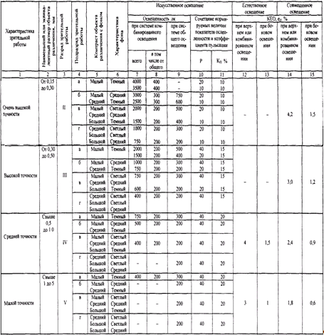 Таблица К.5 - Разряды зрительной работы вне зданий