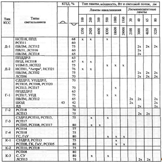 Таблица К.7 - Основные параметры светильников