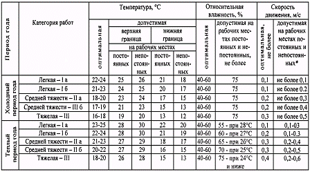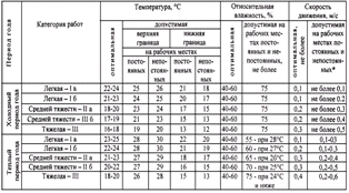 и скорости движения воздуха в рабочей зоне производственных помещений