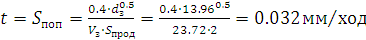 радиальной подачи (средней) в мм/мин: