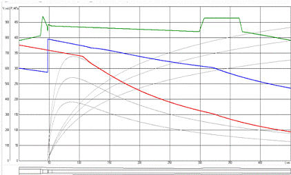 В точке х=106мм происходит отражение гильзы, поэтому произойдет