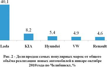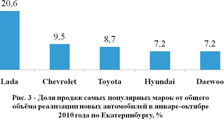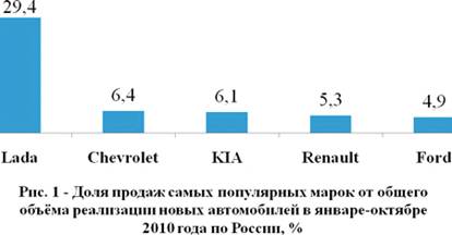 половины (53,2%) всех продаж на рынке новых автомобилей за десять месяцев 2010