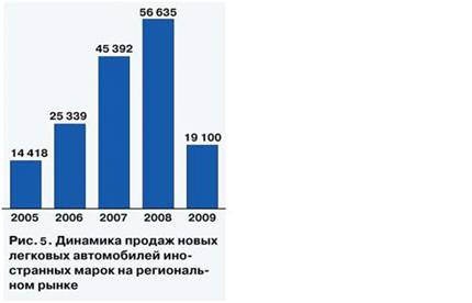 региона представлена сводная таблица №3. Объём и доли авто-рынка.