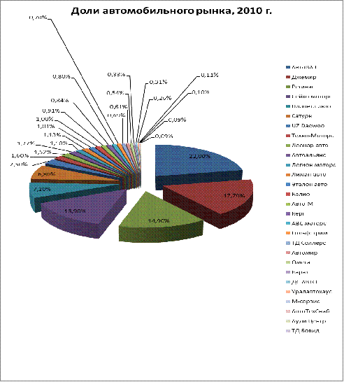 Таблица №3. Доли рынка автодилеров Южно-Уральского региона, 2010 г.