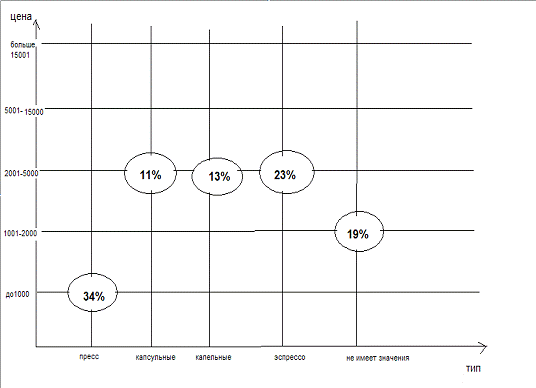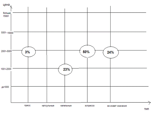 предпочтений клиентов по цене для основных типов кофеварок и кофемашин.