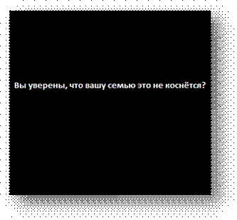 друг за другом следующие надписи: Вы уверены, что вашу семью это не коснётся?