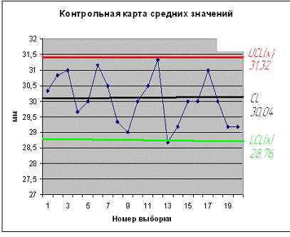 Рисунок 3- Контрольная карта средних