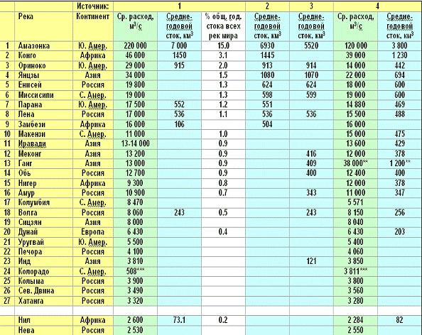 Крупнейшие реки мира (с приблизительным средним расходом воды более 3 000