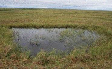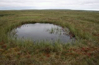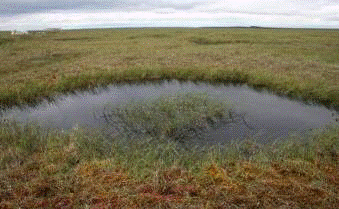 просадкой в середине полигона заполненной водой - микрозером. Размер микроозер варьирует