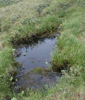 . Стационар 14б. 24.07.11. Гипново-осоковая стадия зарастания озерка.