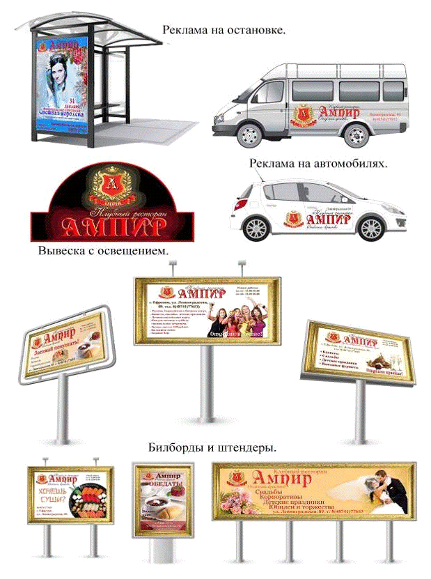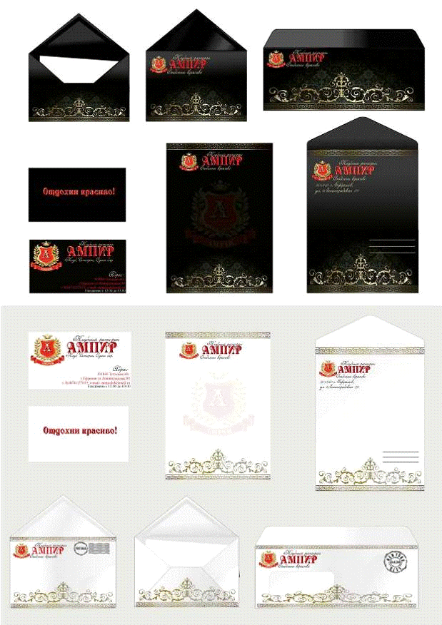 Элементы фирменного стиля клубного ресторана «Ампир»
