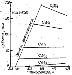 температуре 200 -270 °С и давлении 150 - 400 МПа в присутствии инициаторов
