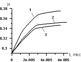 порошковой среды (линия 1) и с учетом - линии 2, 3. Результаты, представленные