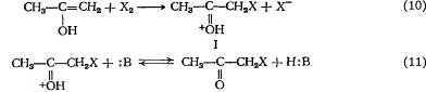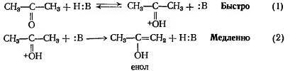 сопряженный амбидентный анион и енол [3]. Енолизация включает две стадии: