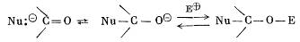образование связи с электронодефицитным (кислым) карбонильным углеродом, то