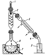 - аллонж; 5 - приемник; 6 - колба; 7 - колбонагреватель