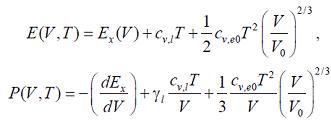 V/V0 = r0/r и модули K0 ≡ KT0, K0 = ( KT/ P)T0,... - материальные параметры.