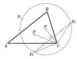 построением. Пусть P1, Р2 и P3 - точки, симметричные точке Р относительно прямых АС, АВ и ВС