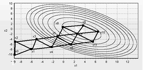 x[0][i]+alpha*s[i];->AddXY(x[1][0],x[1][1],"f(x["+IntToStr(k+1)+"])="+(f(x[1]),ffGeneral,5,0));->Cells[0][k+2]