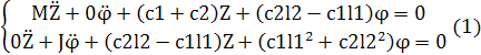 Масса стержня М, момент инерции стержня J. Выбрав в качестве независимых координат угол поворота φ, положение его центра масс Z (стержень однородный) и считая, что