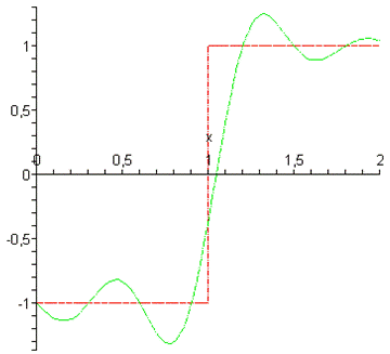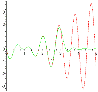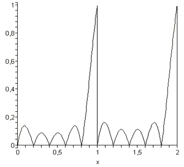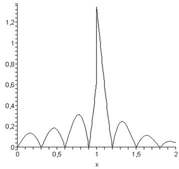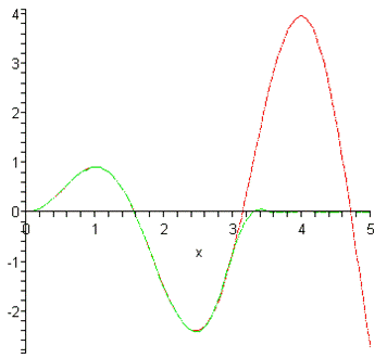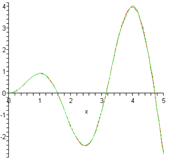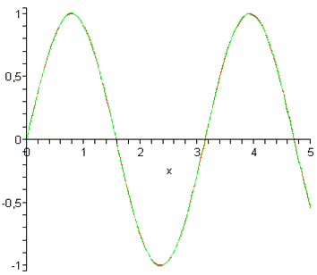S:=t->sin(t);(S(i*Delta_t)*sin(omega*(t-i*Delta_t))/(omega*(t-i*Delta_t)),i=-N..N)::=unapply(%,t)::=abs(S(t)-s(t))::=unapply(%,t)::=plot(S(x),x=0..2,linestyle=4,color=red)::=plot(s(x),x=0..2,linestyle=4,color=green)::=plot(SSS(x),x=0..2,linestyle=1,color=black):(pic1,pic2);