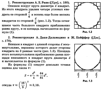 расчеты, использующие более точное приближение для числа π: π ≈ 3⅛. Известный историк науки