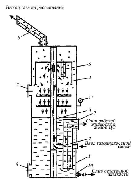 труба несущая; 4 - камера первичной сепарации; 5 - патрубок газовый; 6 -