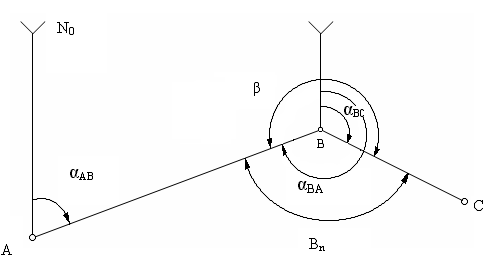 где SAB - горизонтальное проложение линии