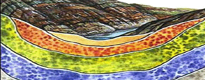 различных горных пород. В синклинальной складке в ядре (центральной части)